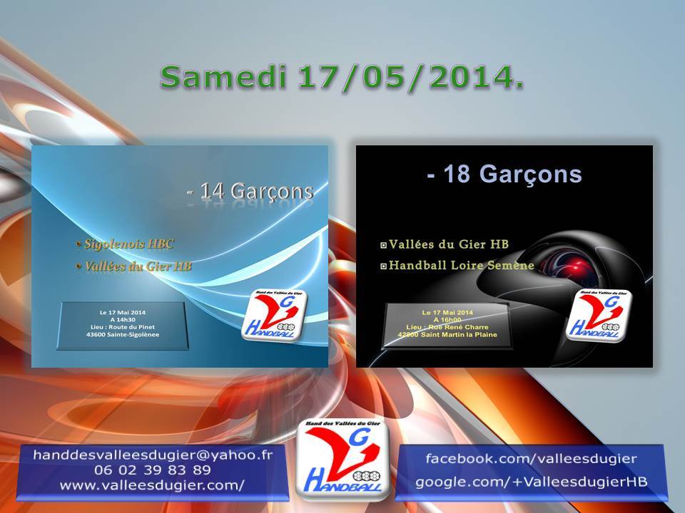 Les -14 Garçons jouent contre Sainte Sigolène à Sainte Sigolène, et les -18 Garçons contre Loire Semène à Saint Martin la Plaine