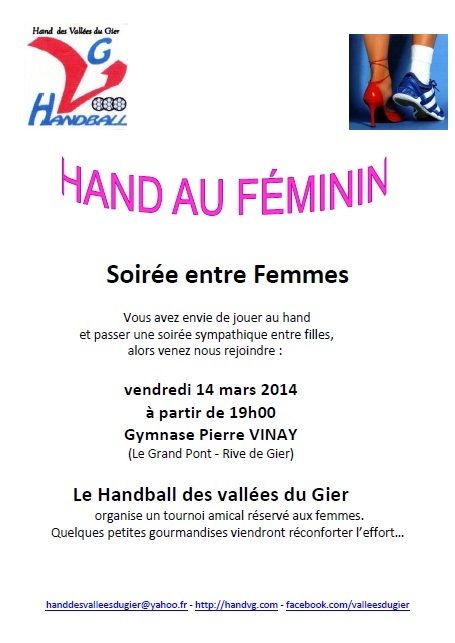 Vous avez envie de jouer au hand et passer une soirée sympathique entre filles, alors venez nous rejoindre :