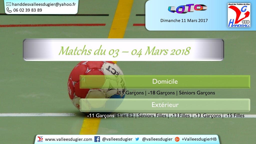 3 Matchs à Vinay ce Samedi 3 Mars.