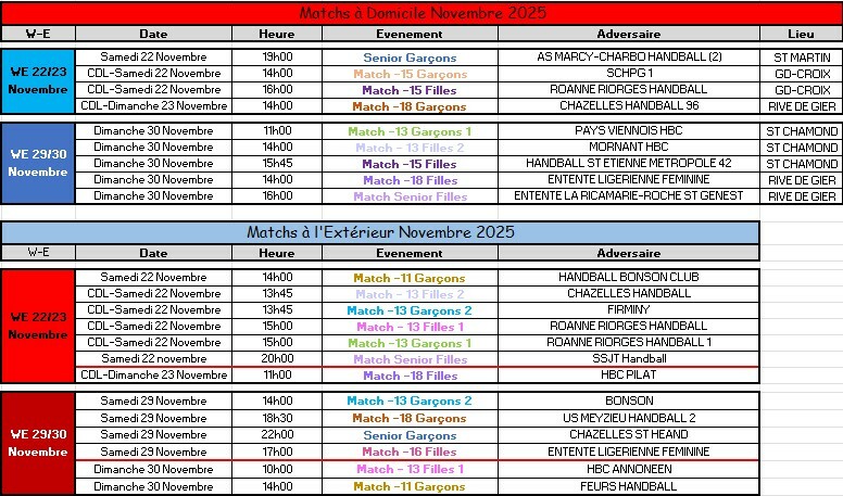 Matchs du mois de Novembre